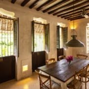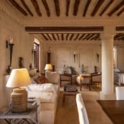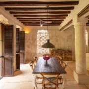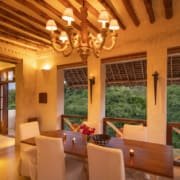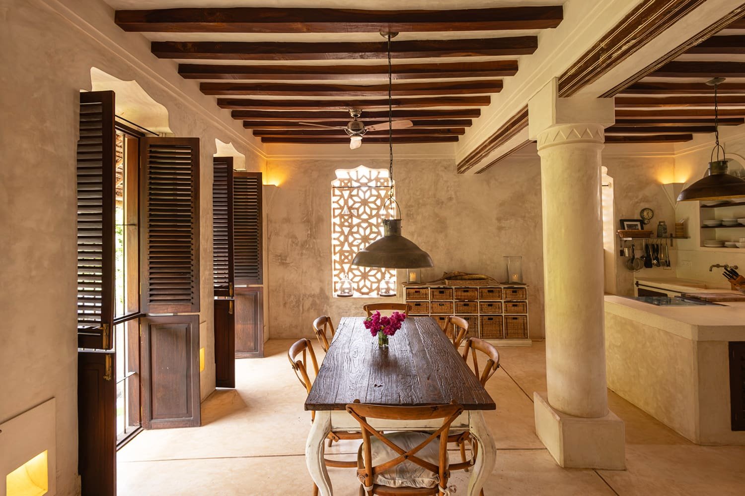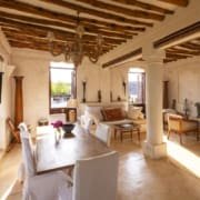 On the Third Floor, opposite the Master Bedroom is a large sitting room with a dining table for eight people. There are large, shuttered windows on every wall, plenty of comfortable seating, and the room is decorated with pieces of African art.