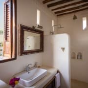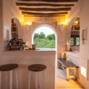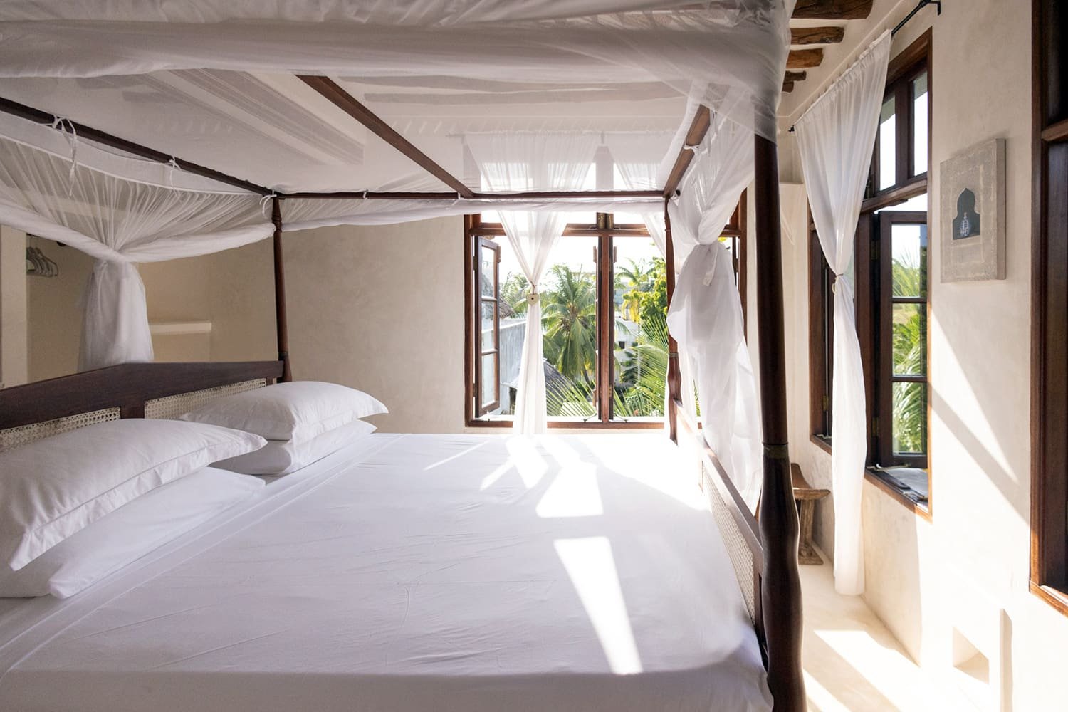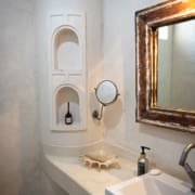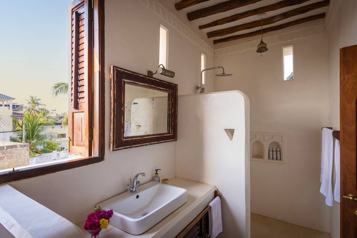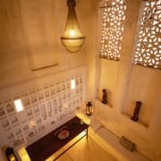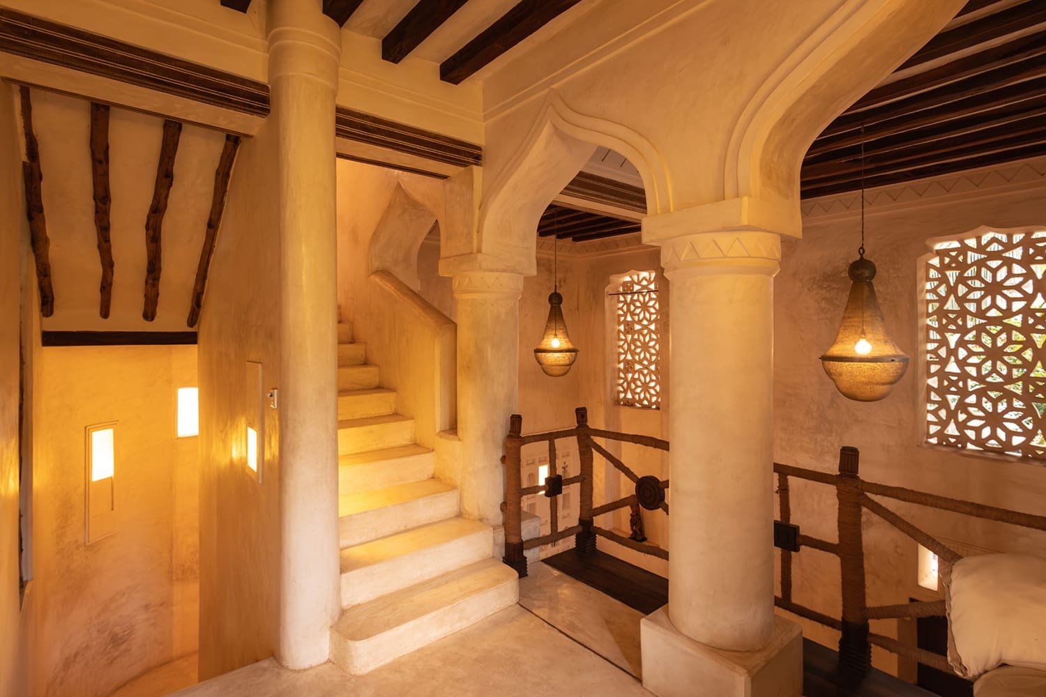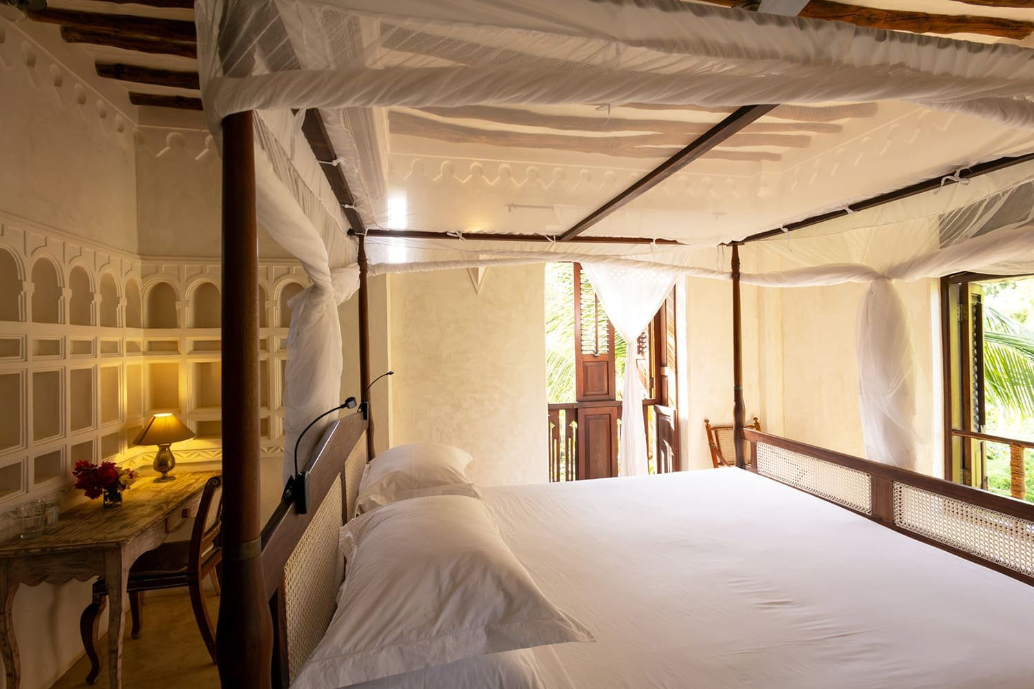The large and lofty entrance hall is decorated in traditional Swahili style with a zidaka wall – an intricate art that has been perfected over centuries by local craftsmen – and hung with two large Arab lanterns. Its size ensures that it remains cool throughout the whole day. Leading from this is a bedroom with two single beds and an ensuite bathroom.