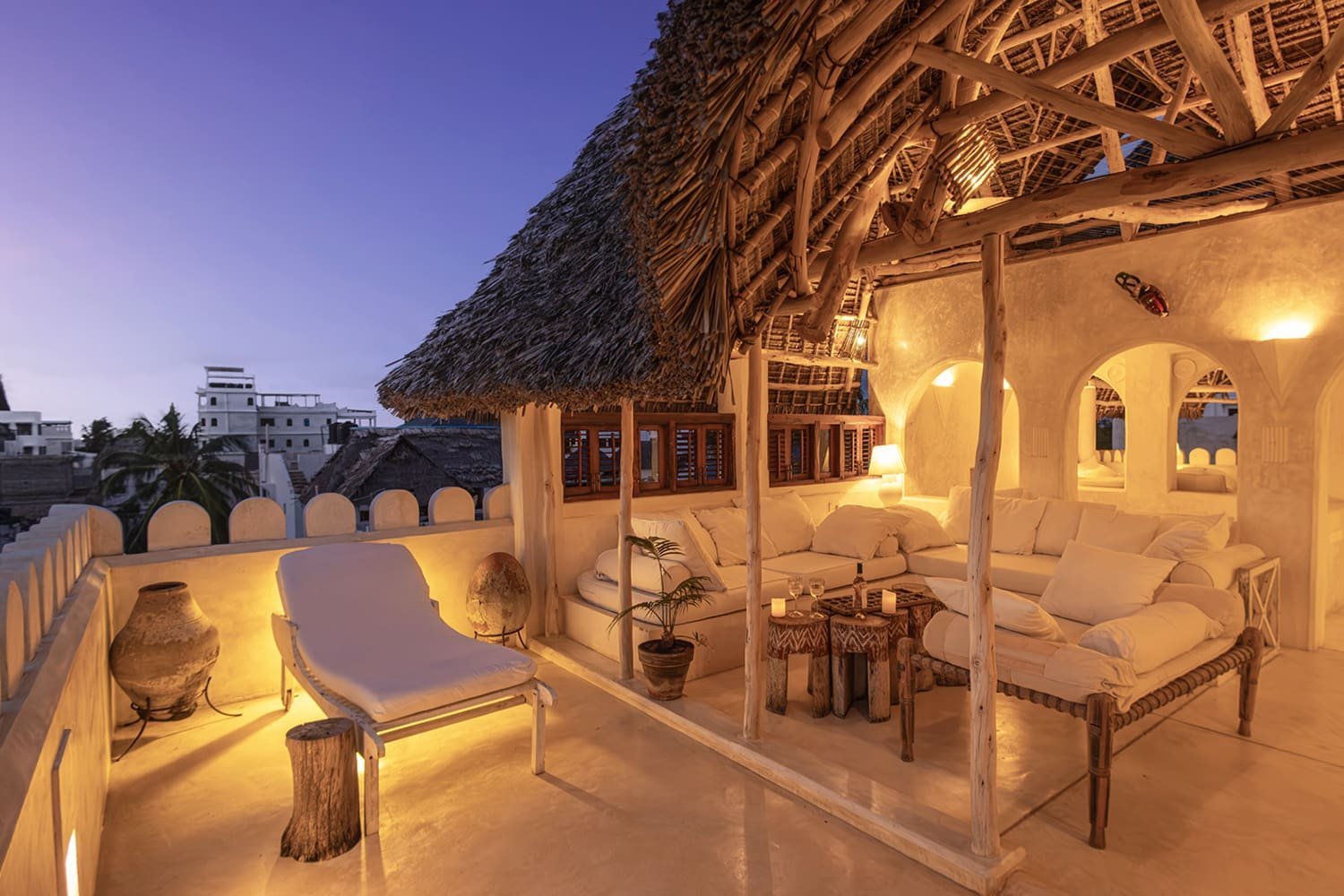 - Scenic top floor terraces – part open, part makuti-thatched – with lounging, dining, bar and sunbathing areas