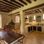 The First Floor has a large, well-equipped, European-style kitchen and dining area. It is one of the areas where meals can be served as an alternative to either the more formal area on the third floor or on the top floor roof terrace.