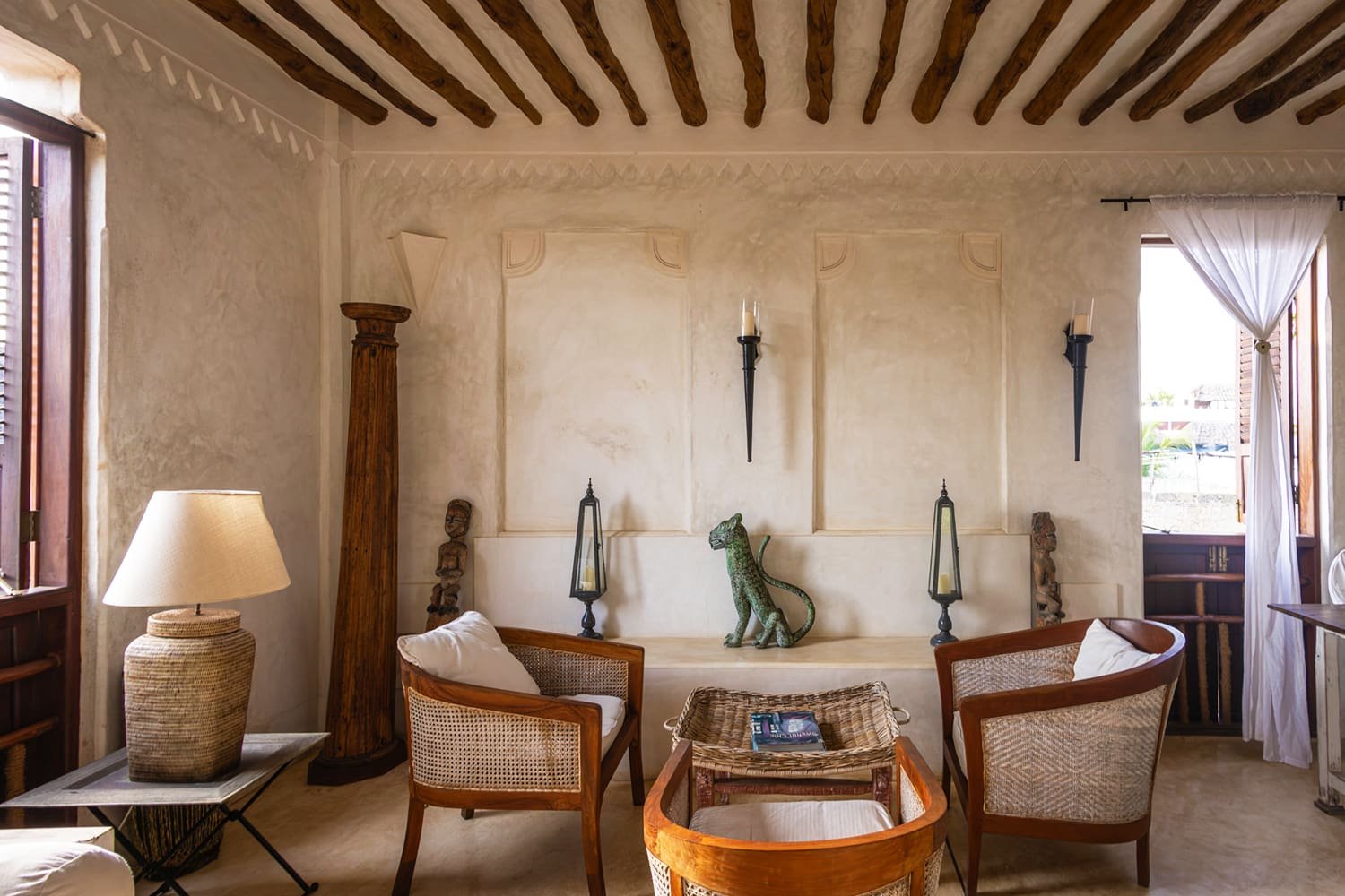 - Decorated and furnished in cool and cohesive maximalist style – filled with elaborate plasterwork and African artifacts