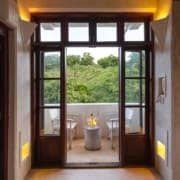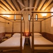 All bedrooms have ample hanging space, shelves for clothes, a writing desk, and a combination safe. They are equipped with ceiling fans and mosquito nets. Each has zidaka artwork on one wall.