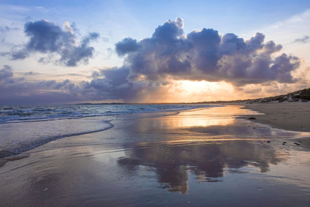 The Second Floor has two large bedrooms, both with ensuite bathrooms, each with two wash basins and solar-powered hot shower. The beds are raised and Emperor sized. One can be split to create two single four-poster beds. Both overlook the sand dunes, a great deal of which are covered in green vegetation.