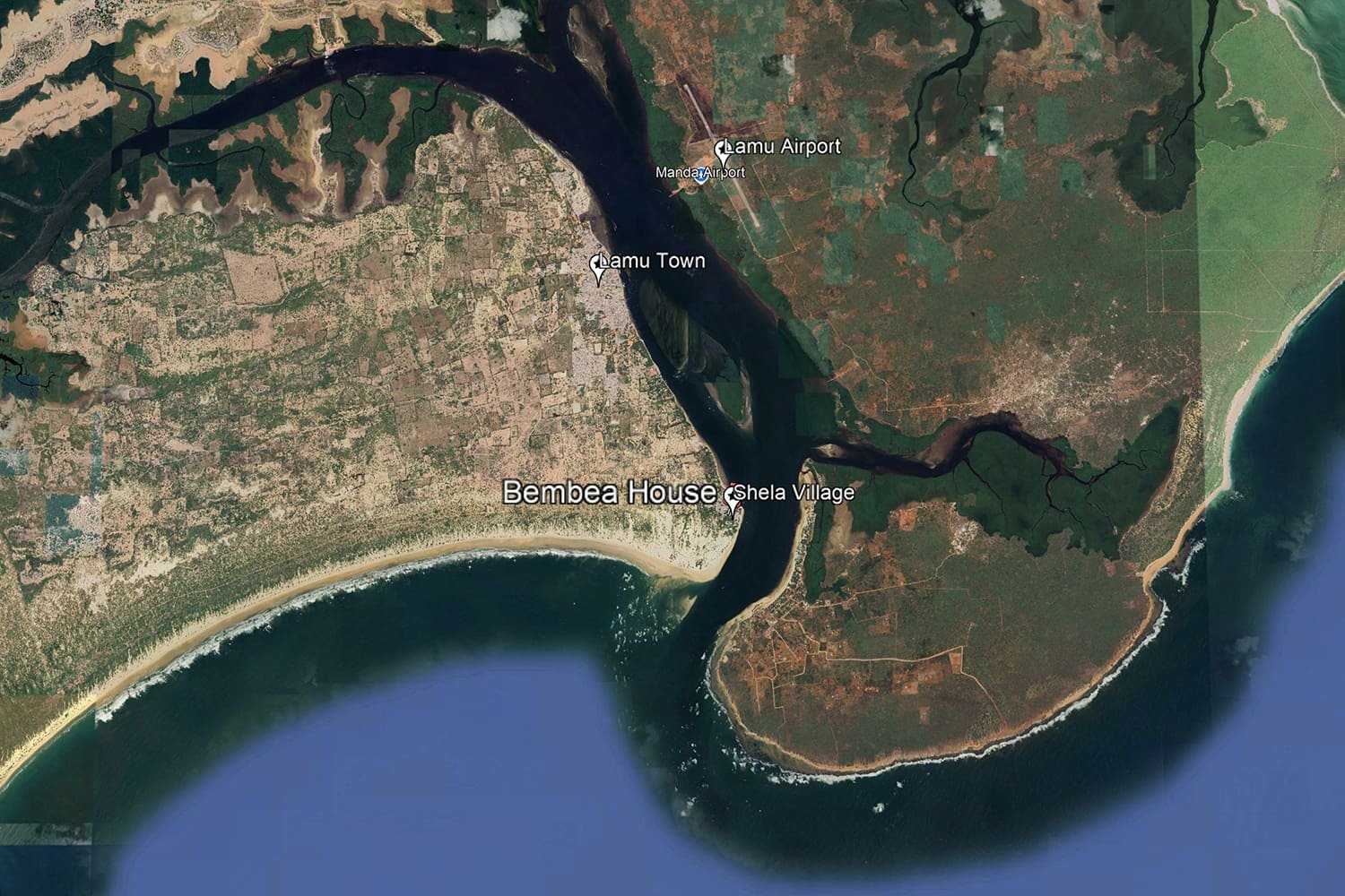 Bembea House sits less than 150 metres from the seafront in Shela Village, close to the eastern tip of Lamu Island. The island’s main beach is just a few minutes’ stroll from the house, as are Peponi Hotel and the other attractions of the village. Lamu Town is two miles north of Shela, and Manda Island and its airport are just a short boat ride away across the Lamu channel.